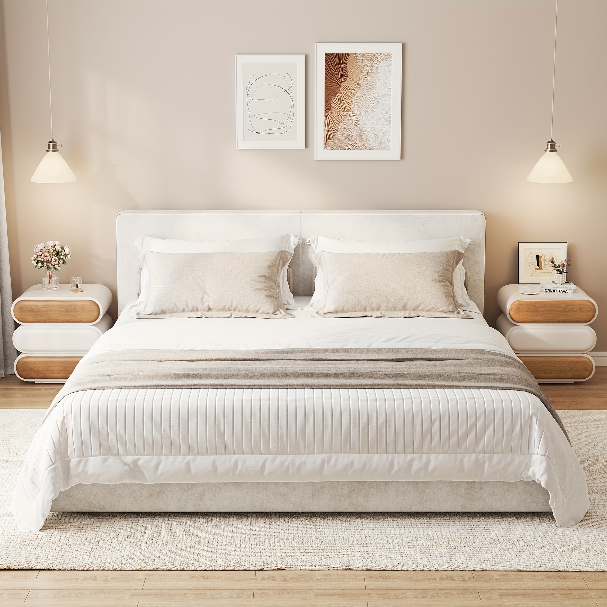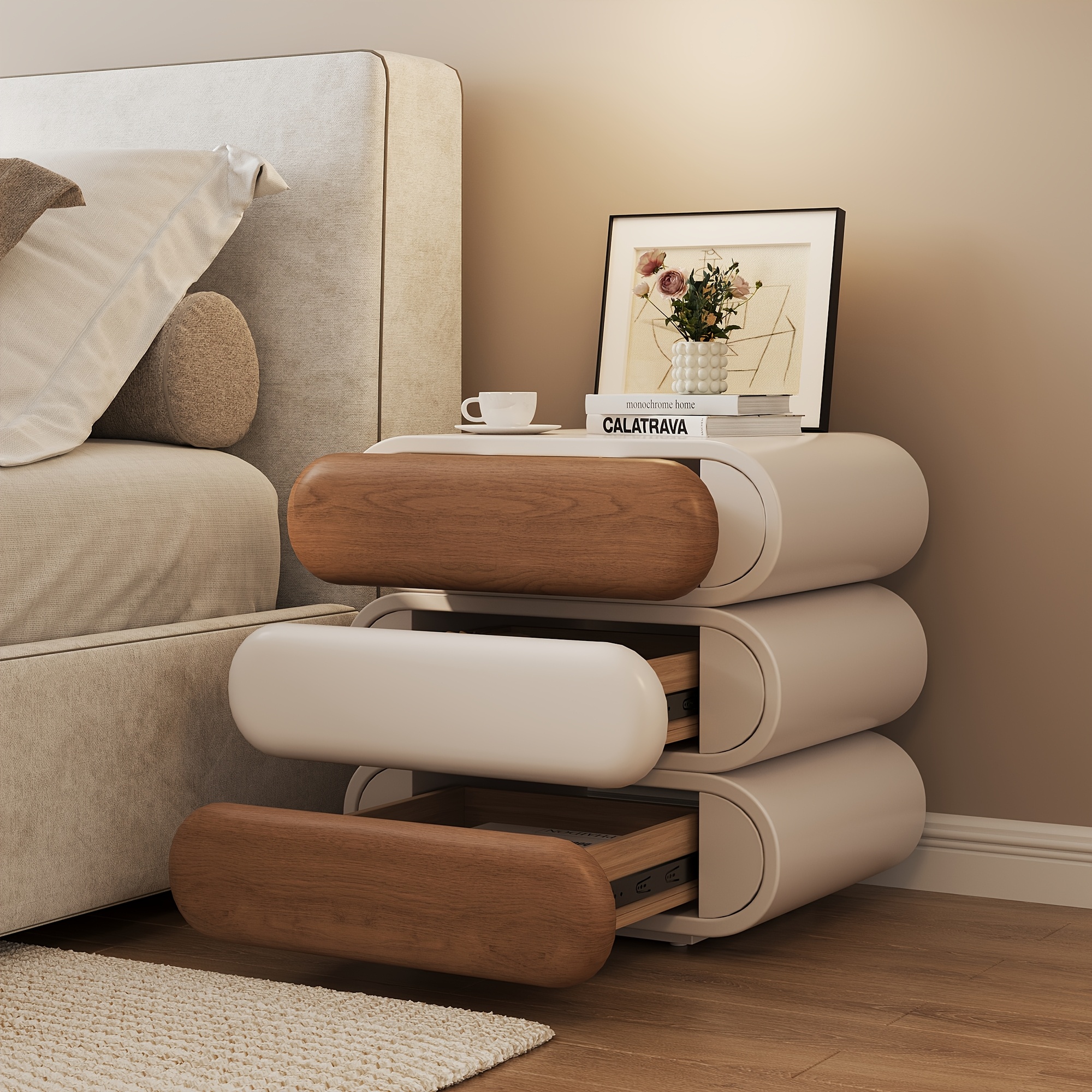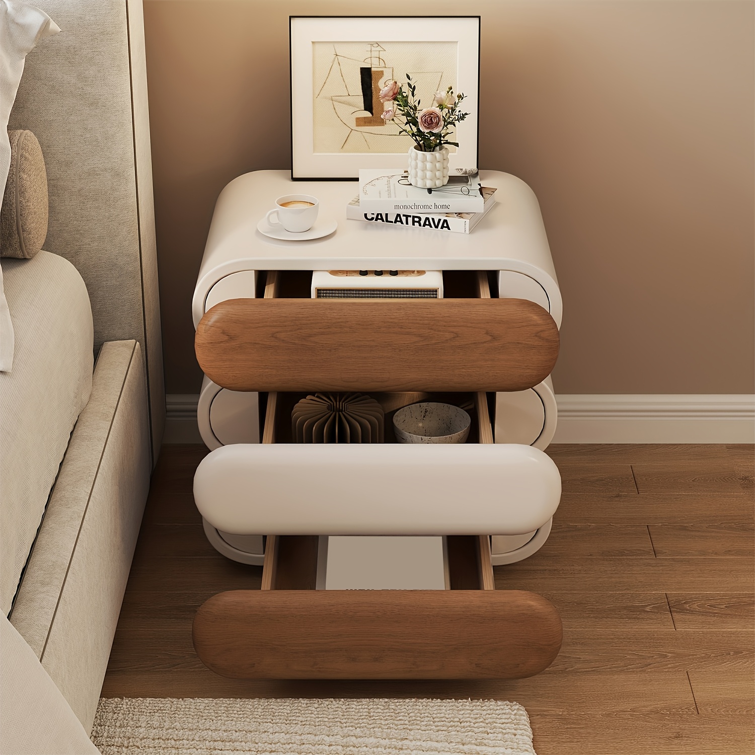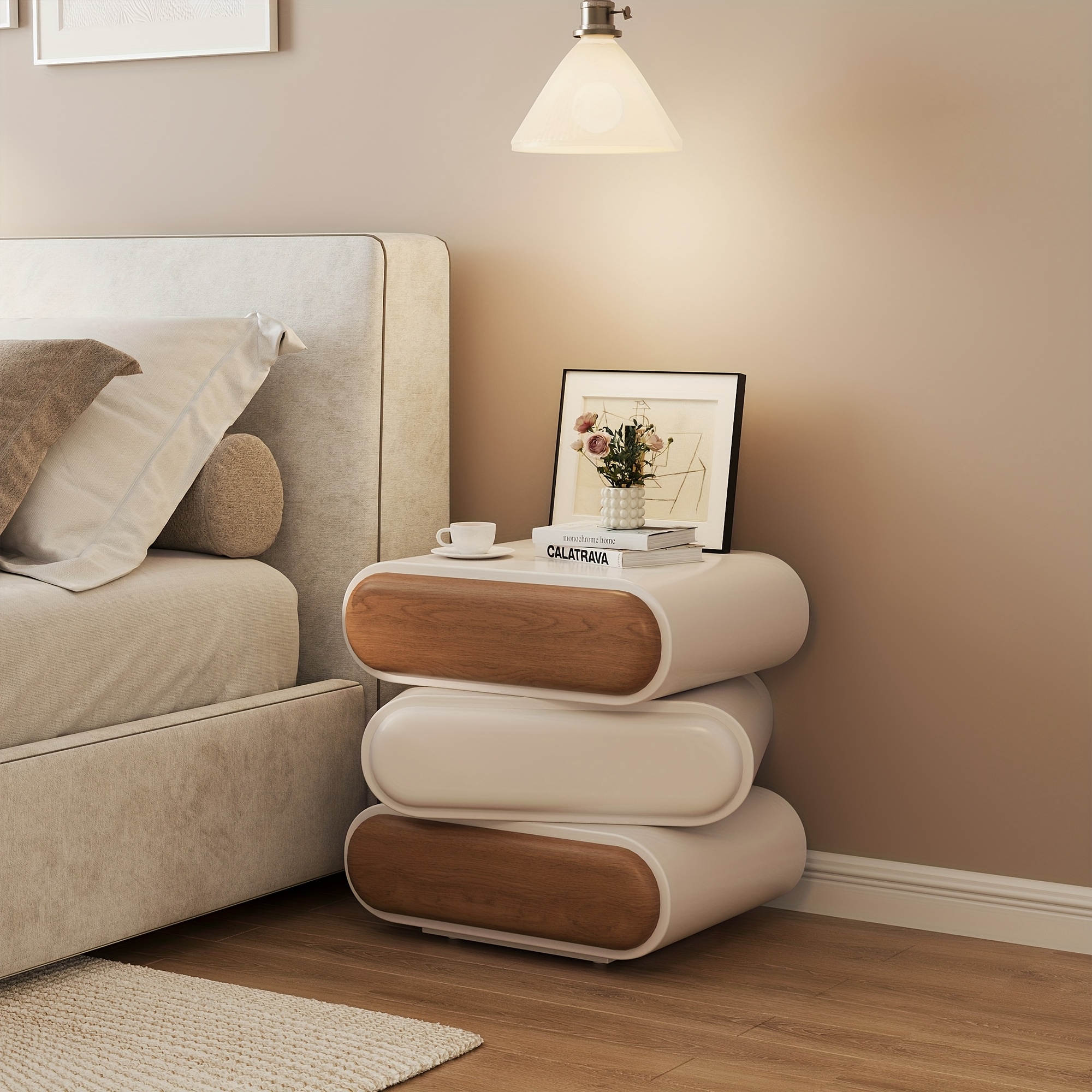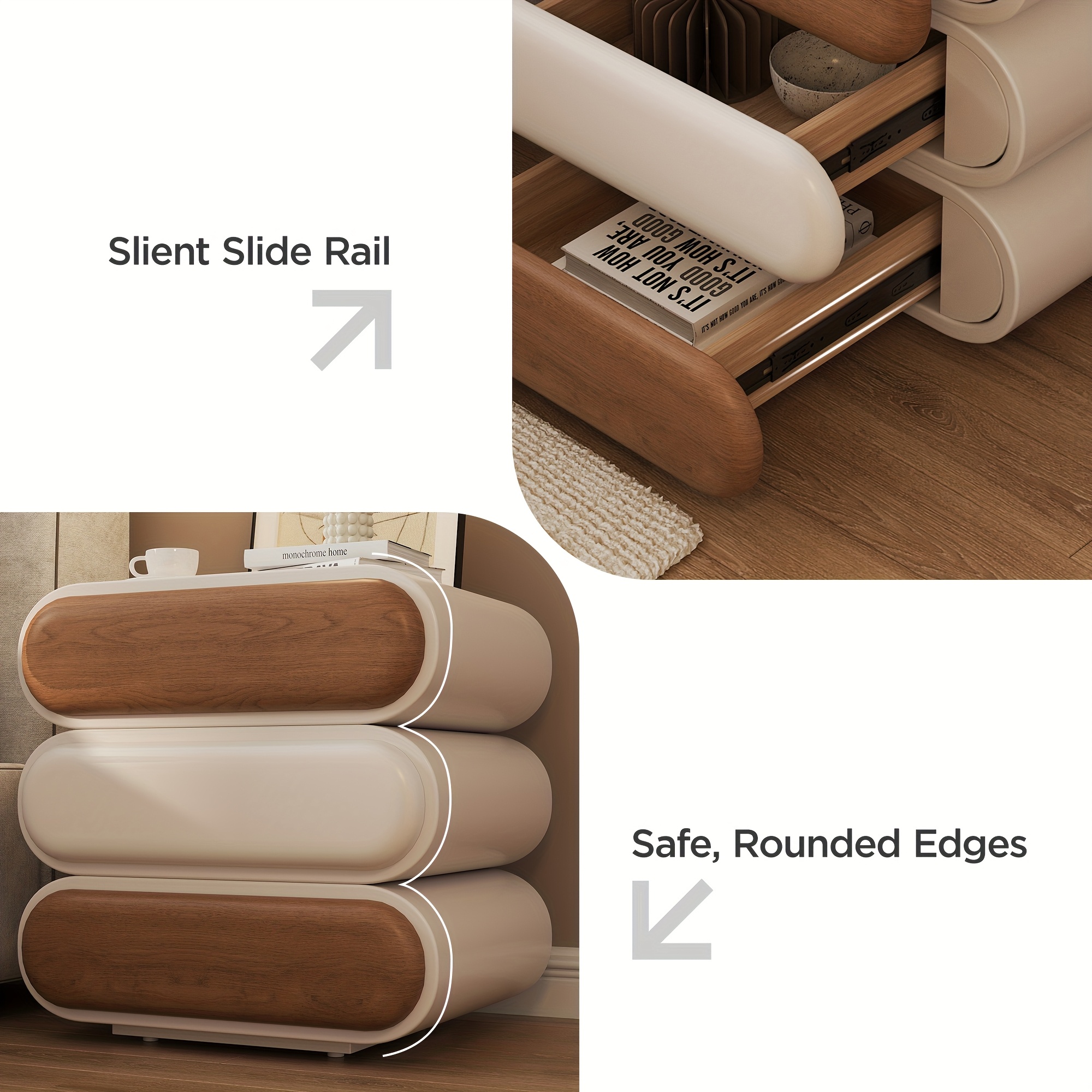 Premium Mid-Century Wood Nightstand, 3-Tier End Table with Storage Drawers & Curved Profile Design, Elegant Bedside Table for Bedroom Or Living Room, White Brown, No Assembly Required High-Quality Craftsmanship, Christmas