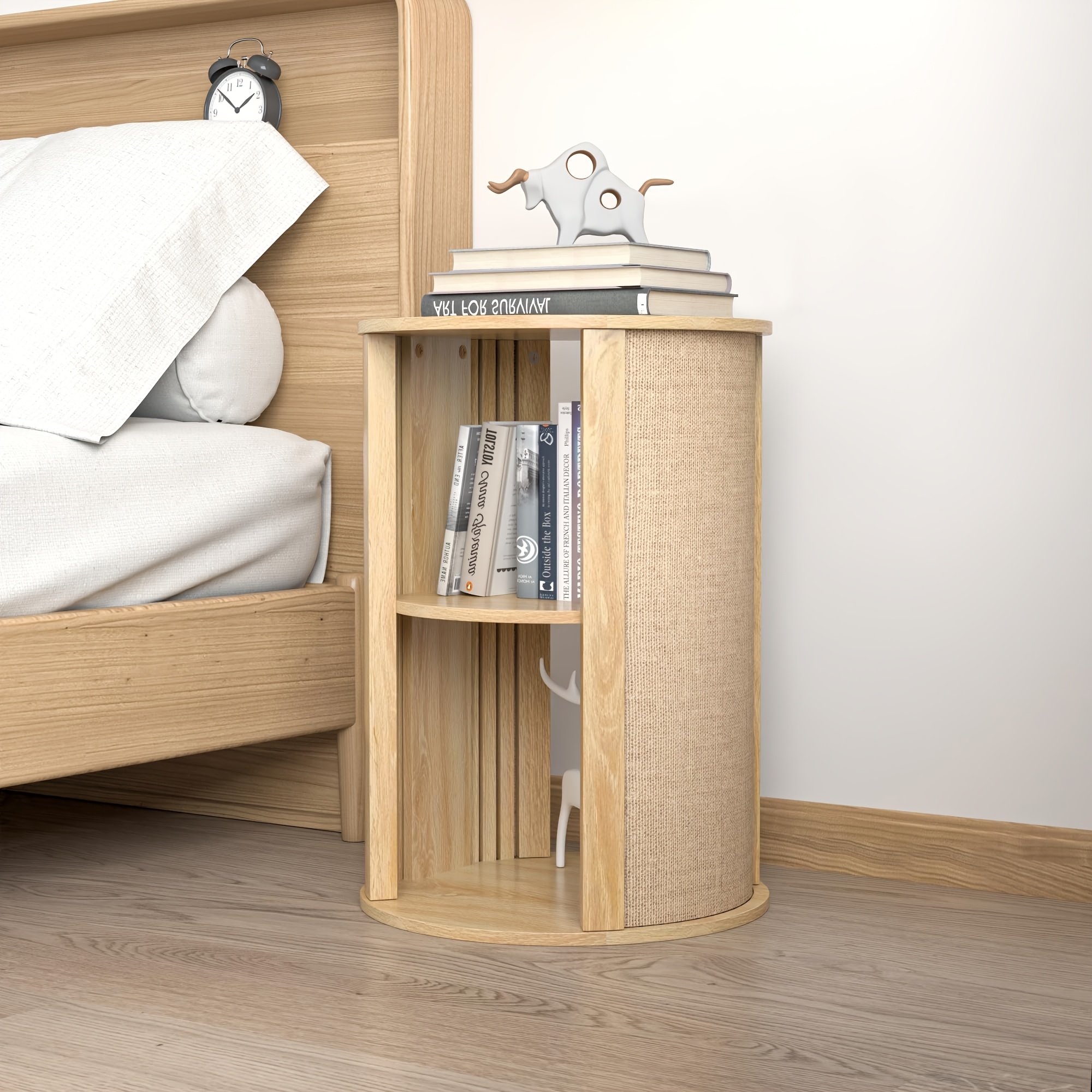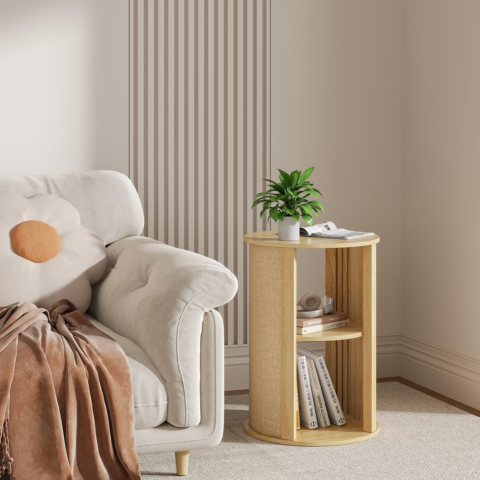 Round Side Table for Sofa, Couch Bedside End Table with Storage, Round Nightstand, Wooden Mid Century Modern Night Stand, 2-Tier, Adjustable Shelf, for Living Room, 16 Inches